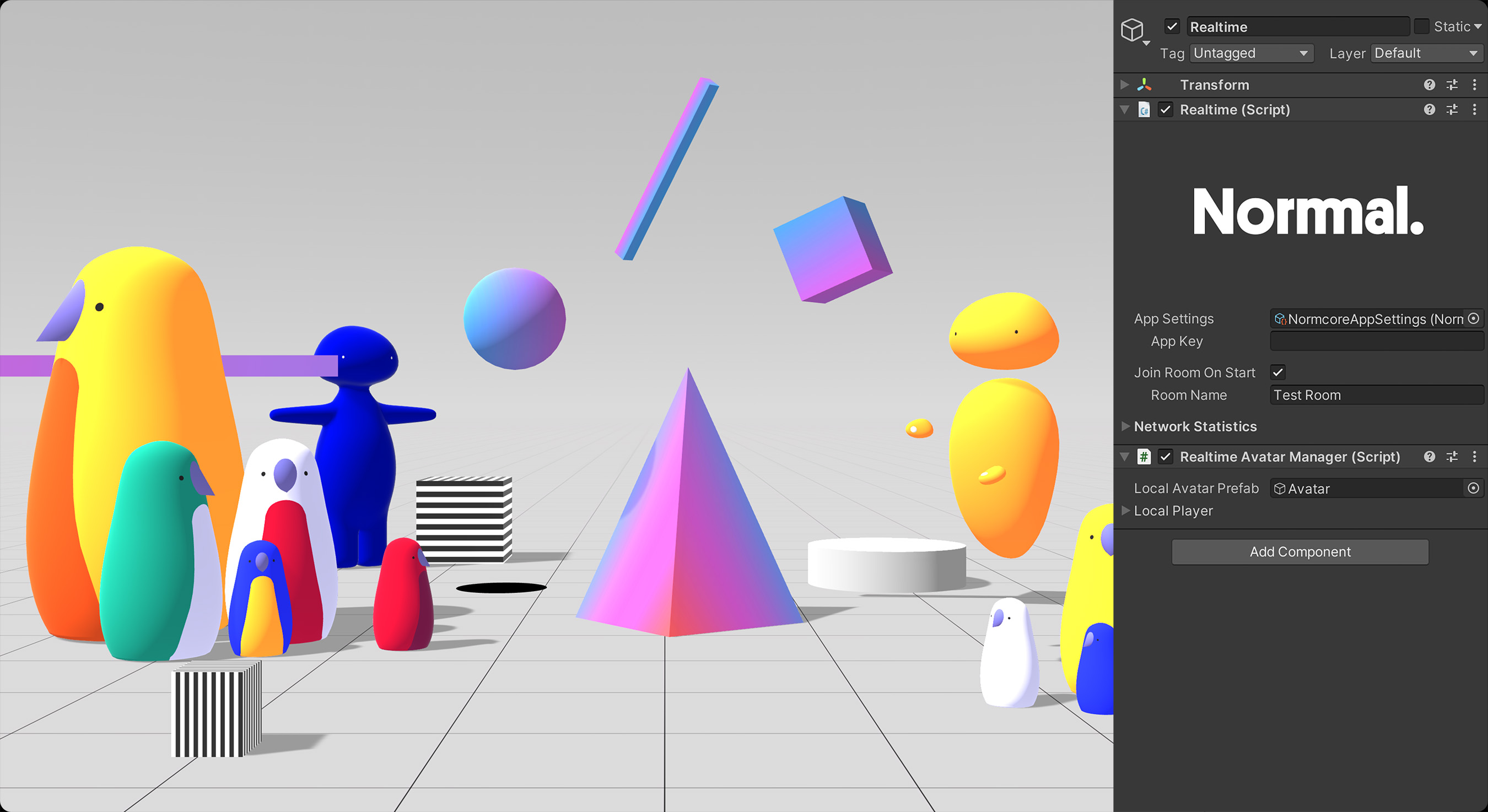 If you want to, you can host Normcore yourself with Normcore Private. Normcore Private is a private copy of the same software we use to host millions of rooms on our public infrastructure. Normcore Private is fully customizable—it allows for dedicated hardware, custom plugins, and DDoS protection. You can even save time and energy by having Normal's DevOps team run Normcore Private for you.